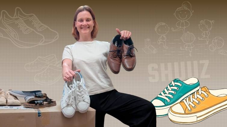 Bei Shuuz, einer Kooperation der Kolping Recycling GmbH mit der Initiative „Sammel mit“, werden gut erhaltene Schuhe gesammelt, recycelt und weitergegeben. Die Schuhe gehen nach einer Qualitätsprüfung an Menschen in Ländern wie Rumänien oder Afrika. Für jedes Kilo Schuhe erhält der Absender einen kleinen Betrag, der laut Lamprecht „zwischen zehn und zwanzig Cent“ liegt. „Ich schicke die Schuhe ja nicht einfach weg, weil’s lustig ist“, sagt Lamprecht. „Wir kriegen einen kleinen Teil des Erlöses zurück, den ich dann fürs Kinderturnen nutze.“